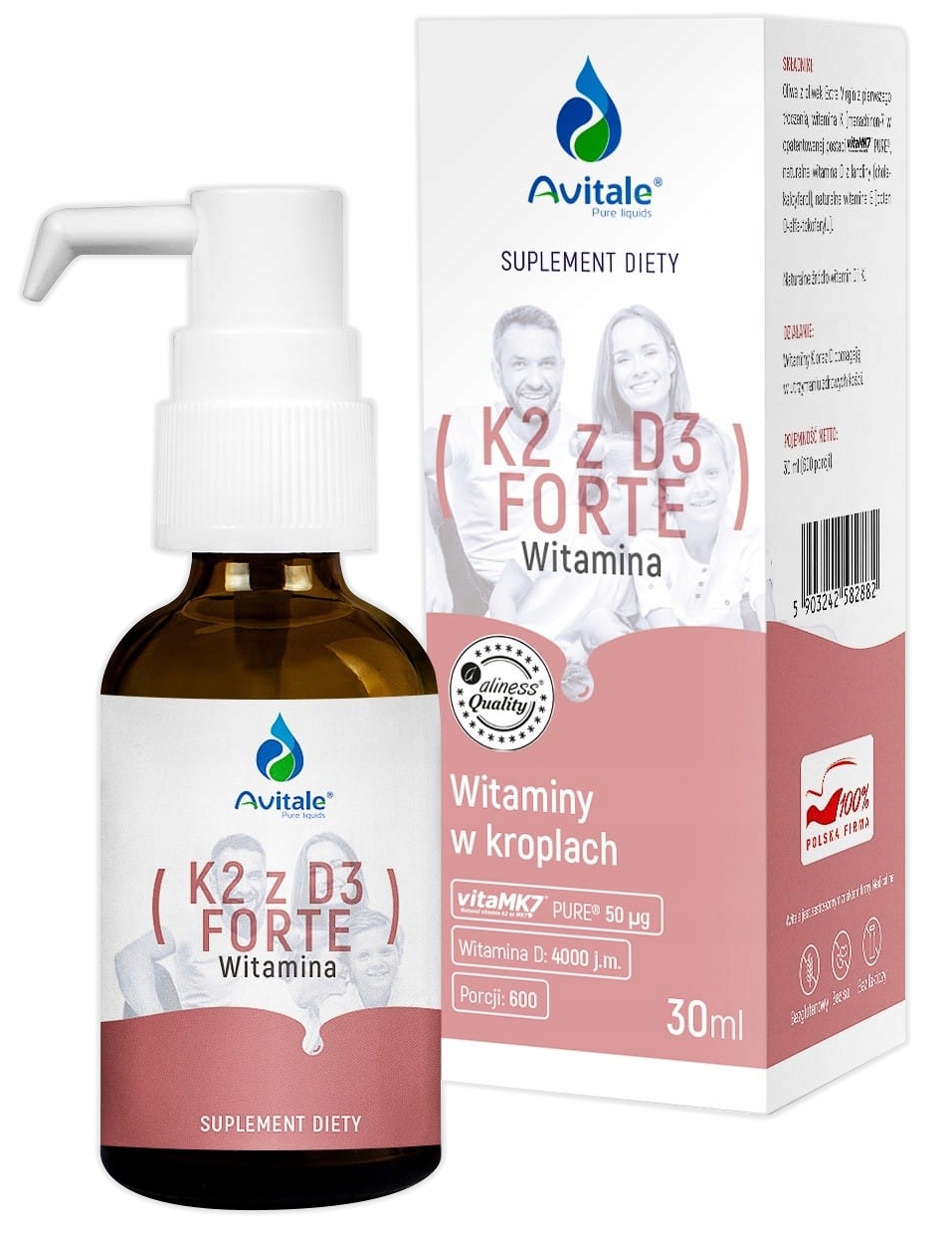 Zalety Aliness Avitale Witamina K2 + D3 FORTE: