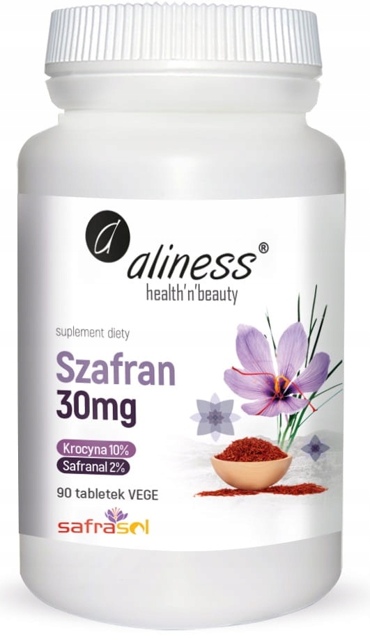 Aliness Szafran 30 mg zawiera wysokiej jakości ekstrakt standaryzowany na zawartość substancji aktywnych, co gwarantuje skuteczność działania.
