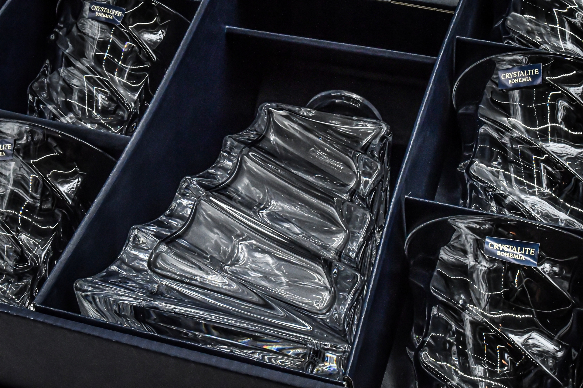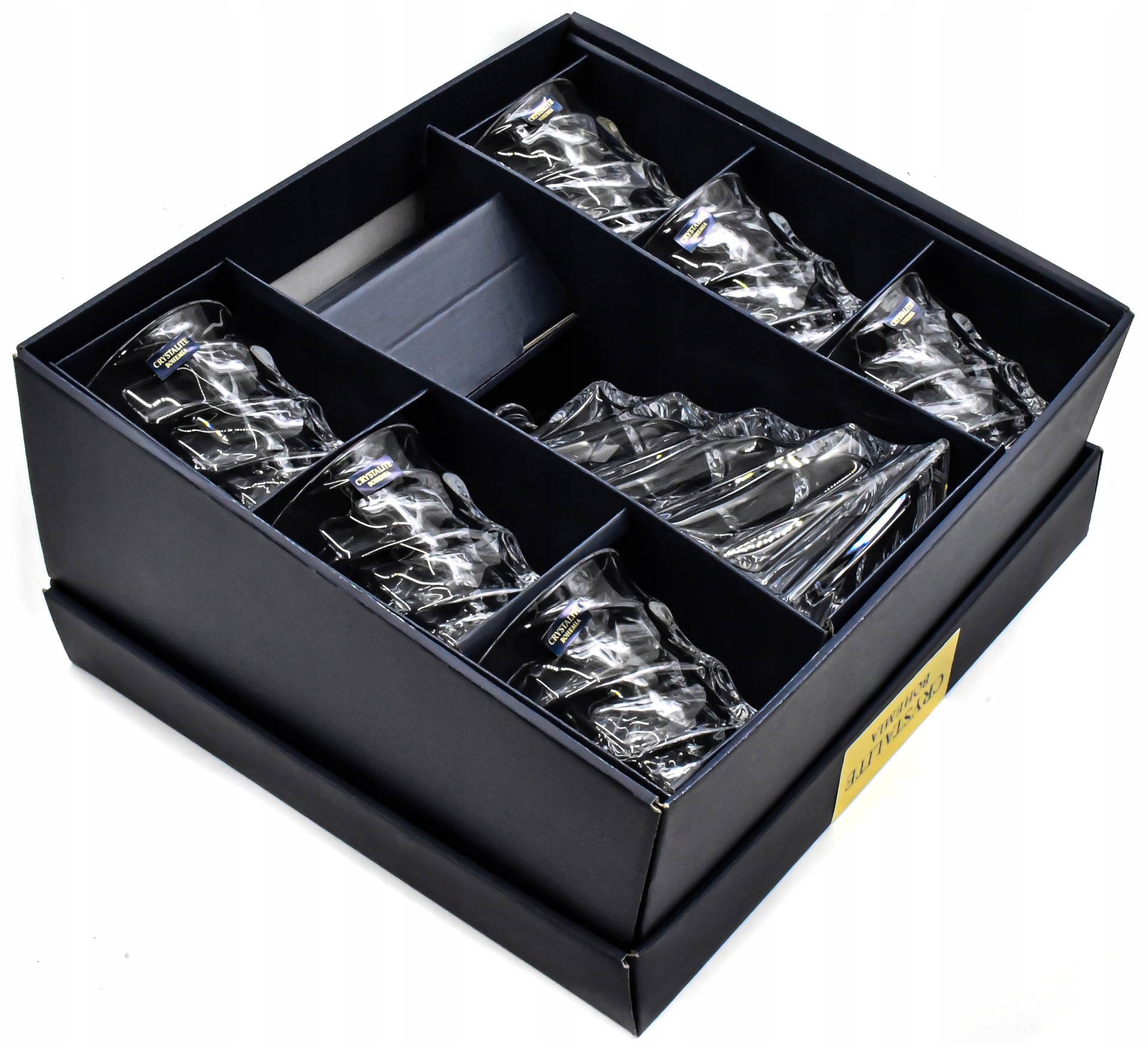 Zestaw został wykonany z wysokiej jakości szkła kryształowego przez znaną na całym świecie markę Bohemia Crystallite z Czech. Charakteryzują się niepowtarzalnym i oryginalnym kształtem, precyzyjnym wykonaniem oraz przyciągają uwagę swym pięknem.