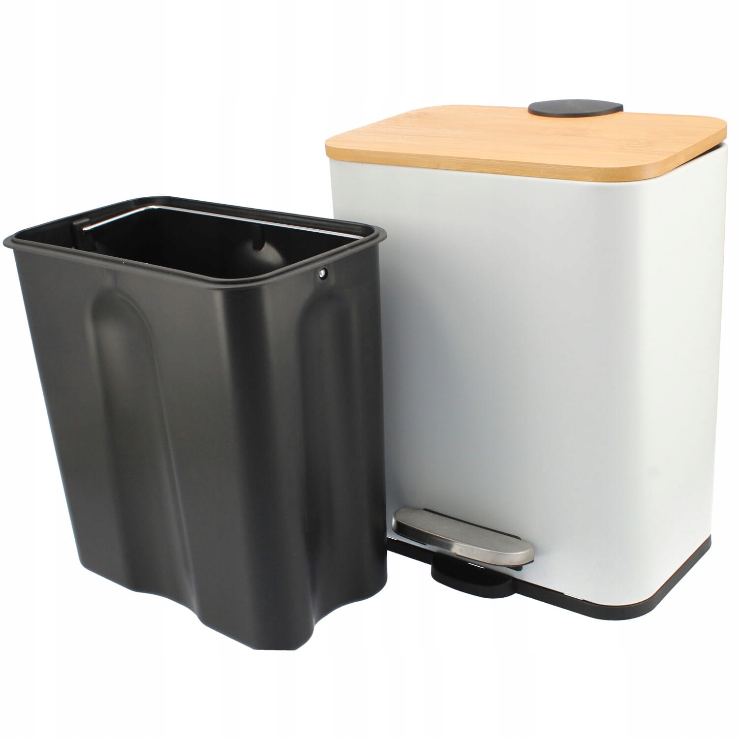 Kosz metalowy z pedałem Biały Easyform bambus 5 L