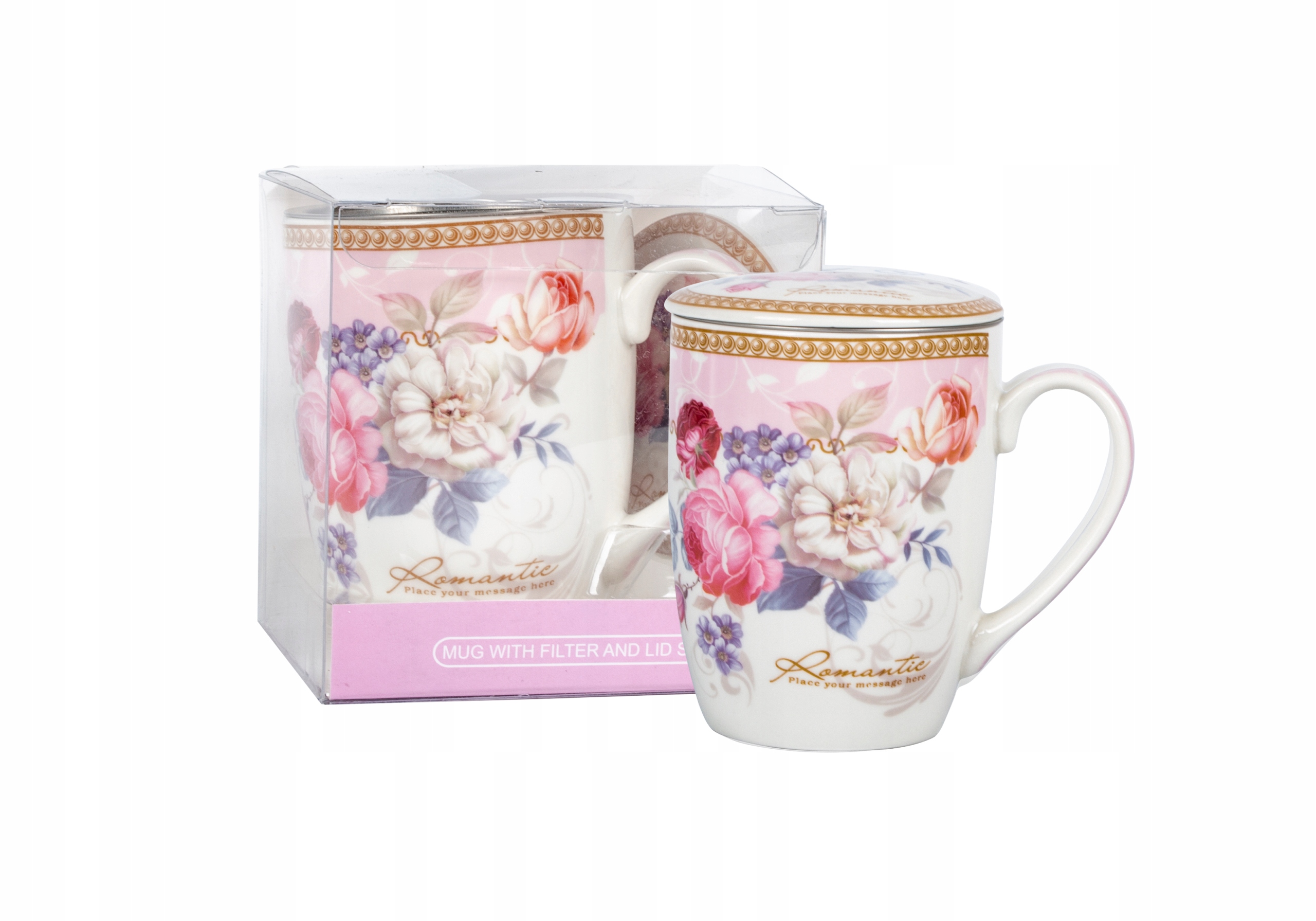 LIVELLO Kubek porcelanowy z metalowym zaparzaczem 350 ml kwiaty