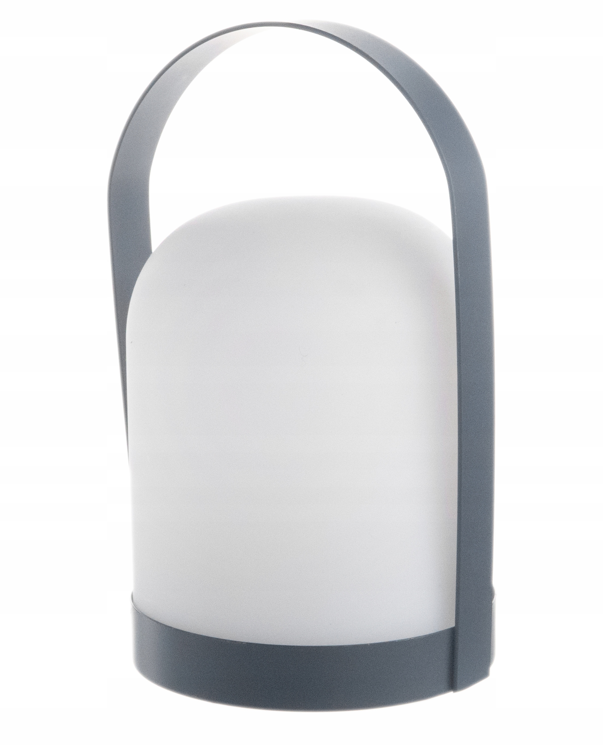 Lampa wykonana z białego tworzywa sztucznego, zaś uchwyt wykonany z metalu w kolorze szarym.