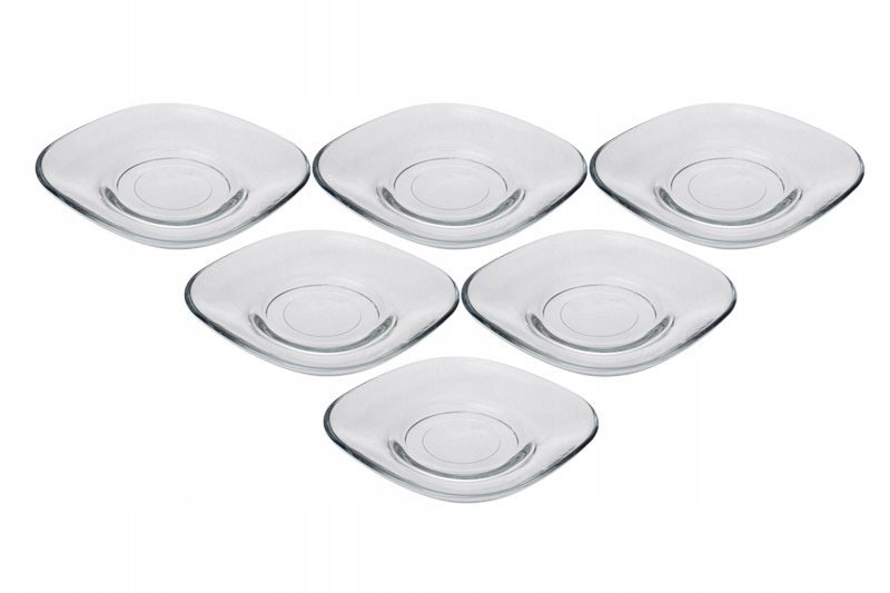- Komplet 6 spodków wykonanych z wysokiej jakości szkła.
