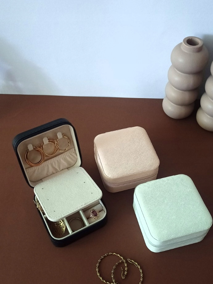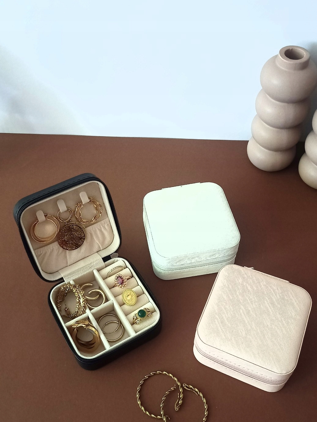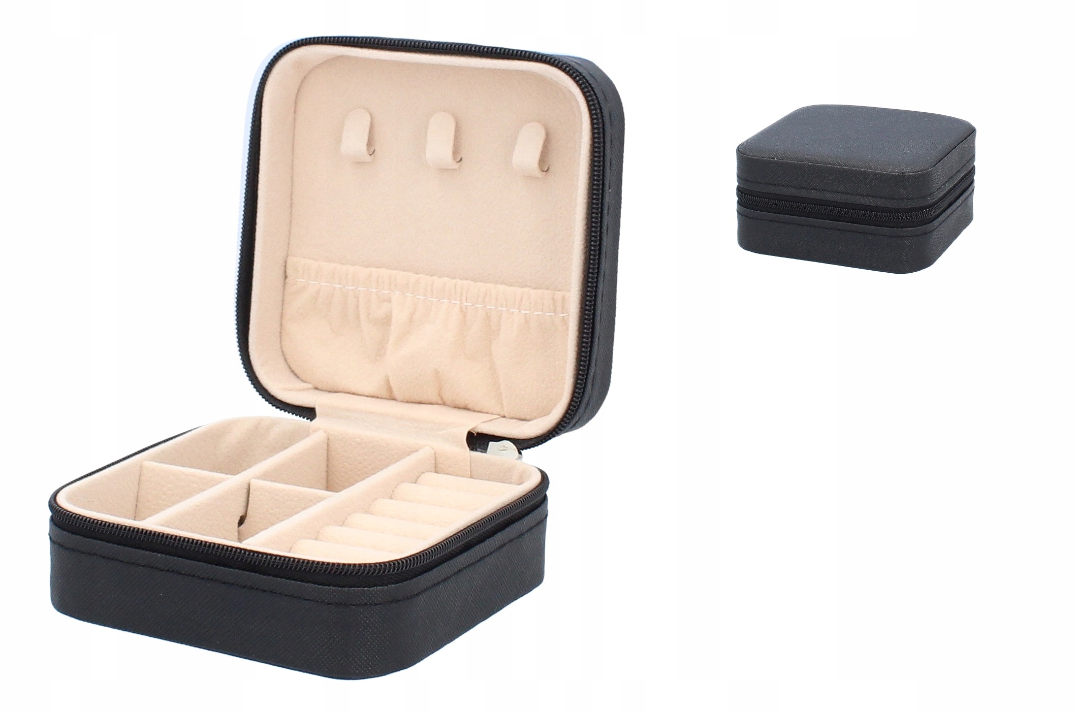• Podzielona na sekcje i przegródki, dostosowane do przechowywania różnych typów biżuterii – pierścionków, naszyjników, bransoletek, kolczyków.