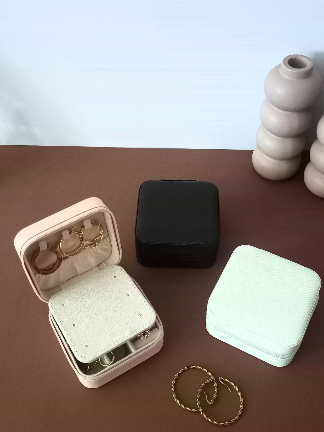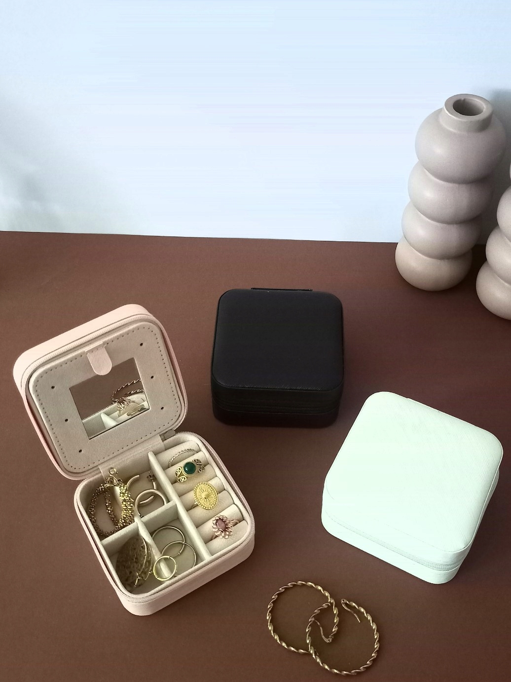 - Podzielona na sekcje i przegródki, dostosowane do przechowywania różnych typów biżuterii – pierścionków, naszyjników, bransoletek, kolczyków.