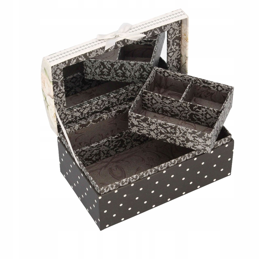 - kuferek z przyjemnego w dotyku, twardego kartonu