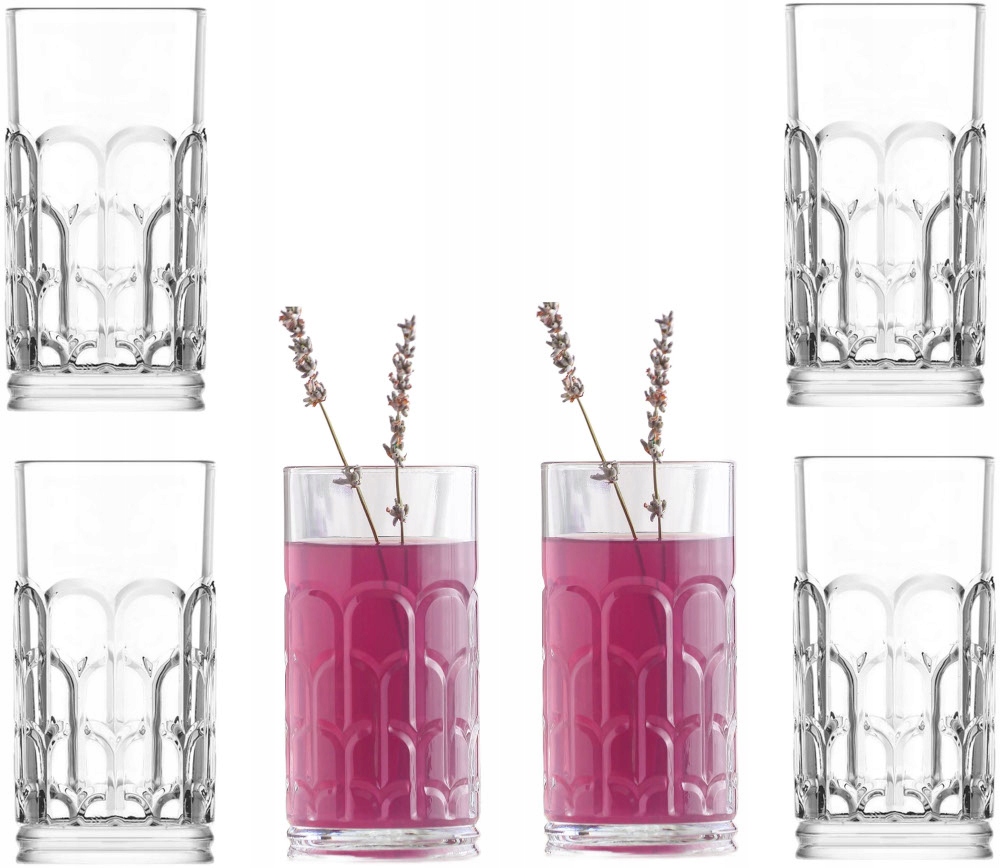 Wysokie ozdobne szklanki do wody drinków napoi ARH440F 6 sztuk 390ml LAV